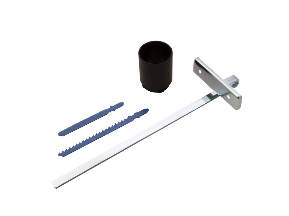 Полная комплектация — лобзик поставляется с направляющей, пилками по дереву и металлу, шестигранным ключом, адаптером для подключения пылесоса и запасными угольными щетками.