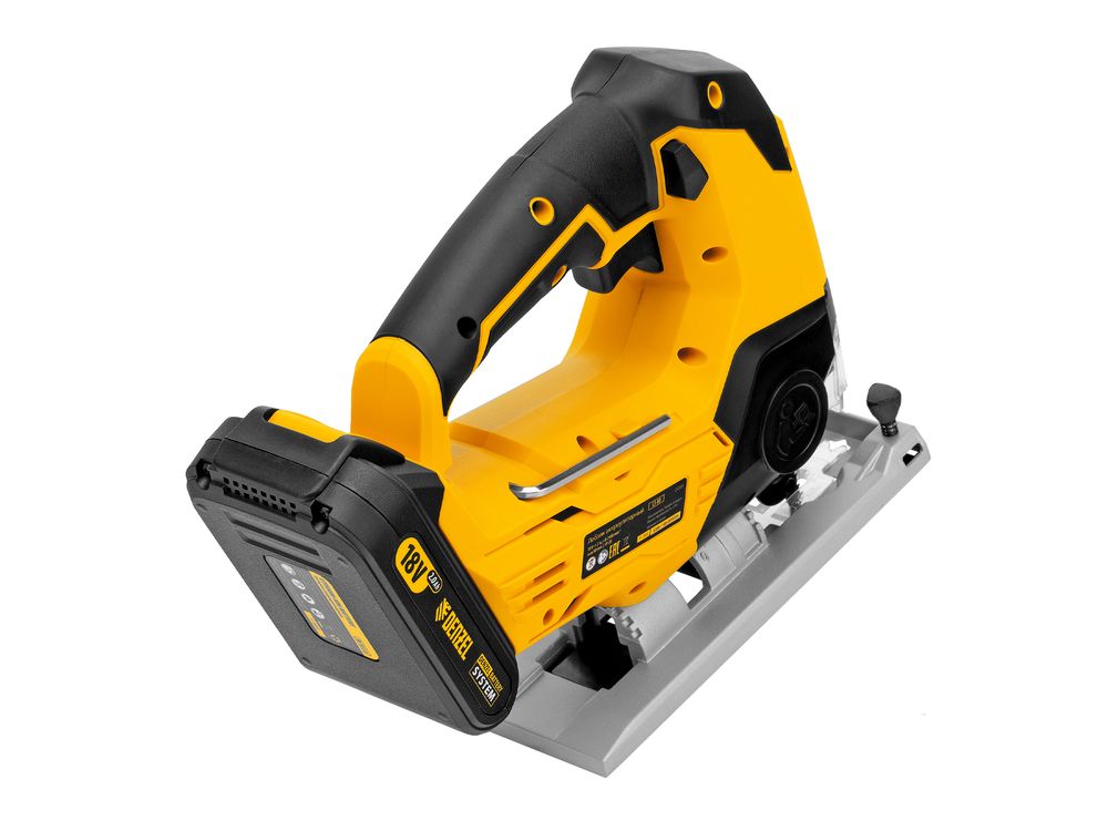 Аккумулятор с интеллектуальной системой распознавания нагрузки обеспечивает длительную работу лобзика и обладает высоким ресурсом. Совместим с любым аккумуляторным инструментом Denzel battery system 18V.