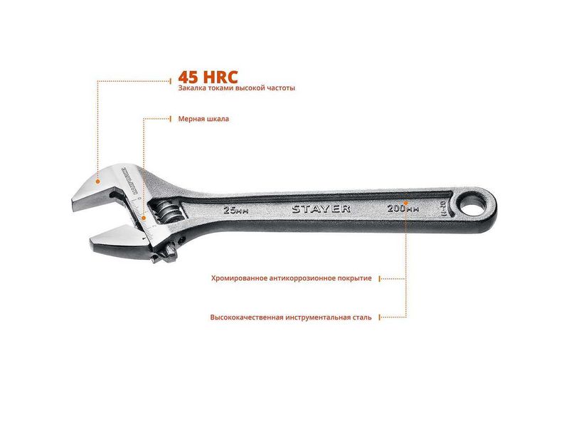 Ключ разводной MAX-Force, 200 / 25 мм, STAYER-360
