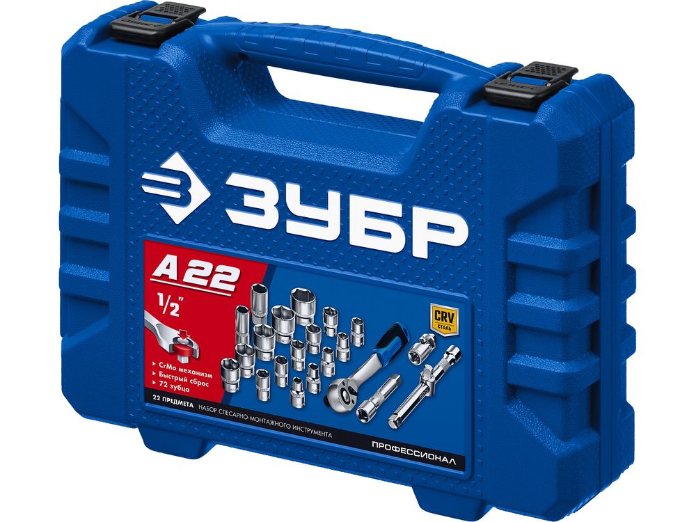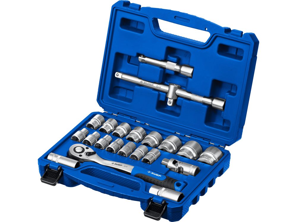 Набор ЗУБР МАСТЕР: Торцовые головки FLANK (1/2), доп.принадлежности, Cr-V, 10-32 мм, 22 предмета