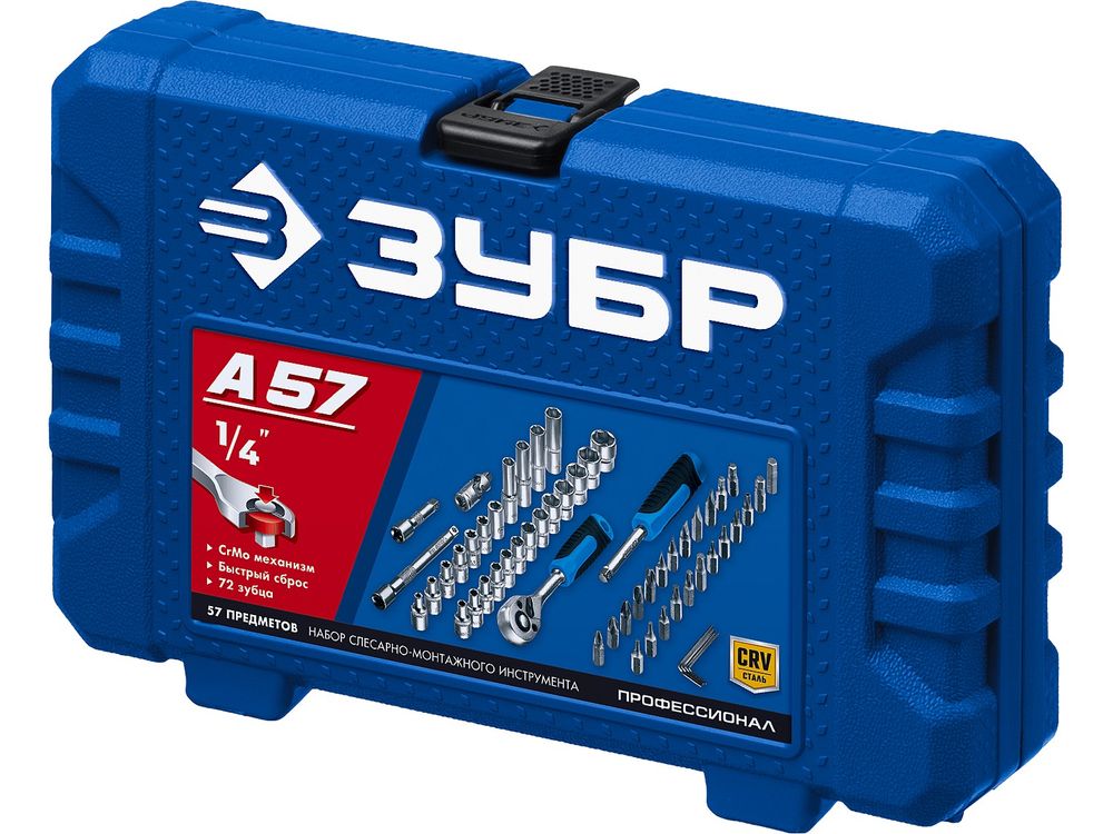 ЗУБР А-57 универсальный набор инструмента 57 предм. Серия Профессионал.