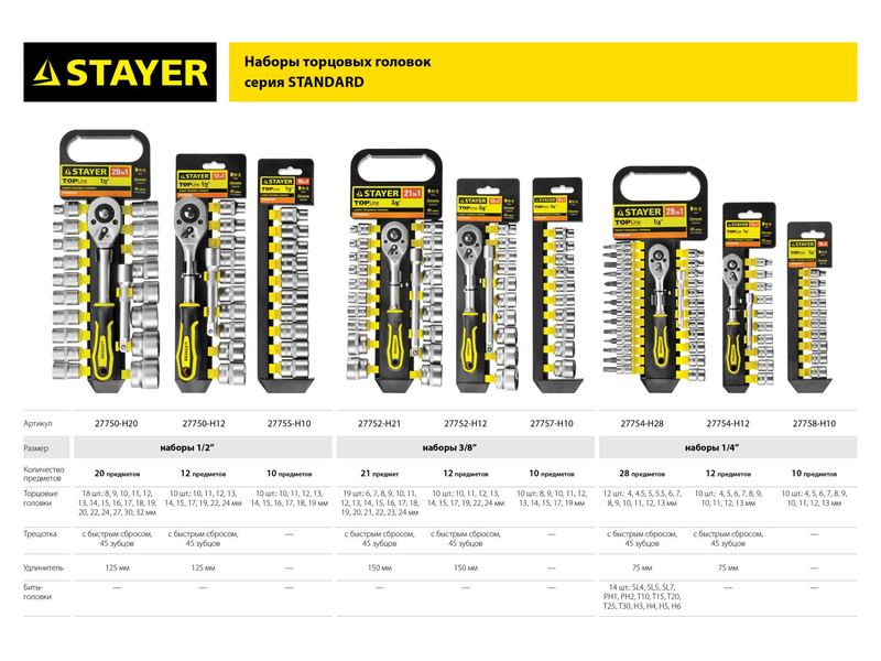 Наборы инструмента, головки Наборы инструмента STAYER RSS 10LD набор торцовых головок 10 предм.-355