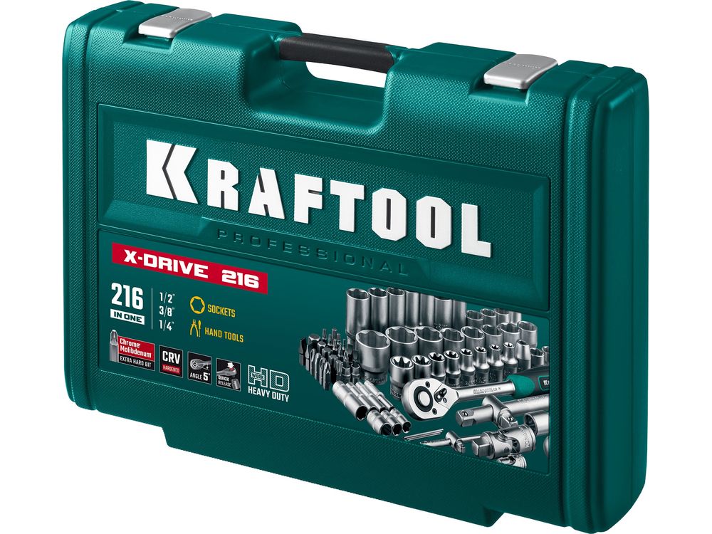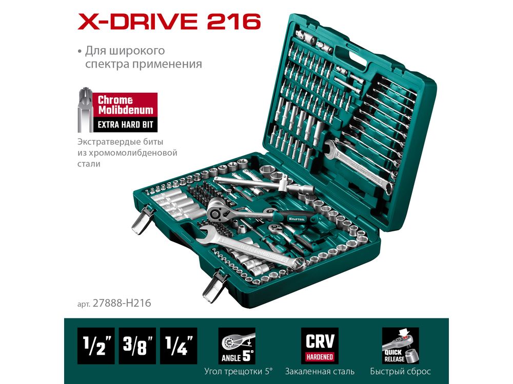 KRAFTOOL X Drive, 216 предм., (1/2+3/8+1/4), универсальный набор инструмента (27888-H216)