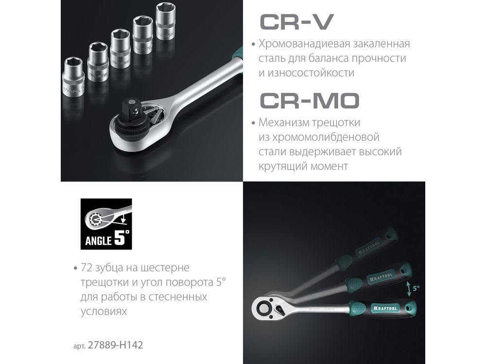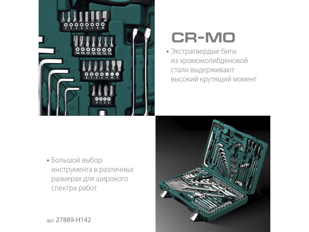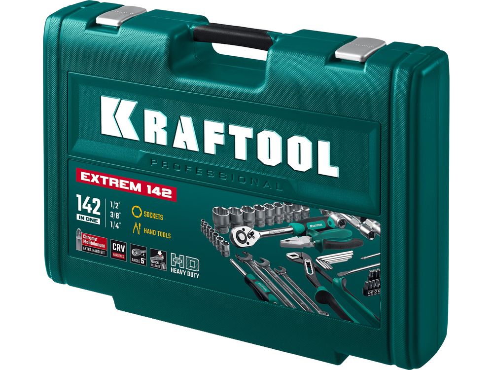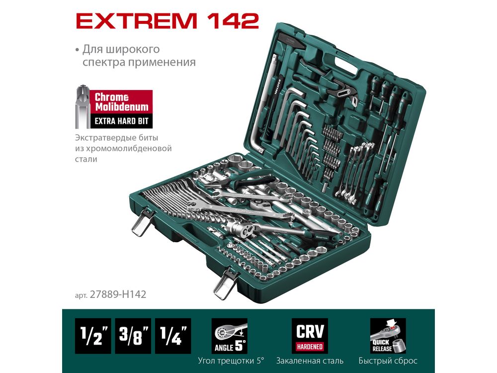 KRAFTOOL EXTREM-142, 142 предм., (1/2+3/8+1/4), универсальный набор инструмента (27889-H142)
