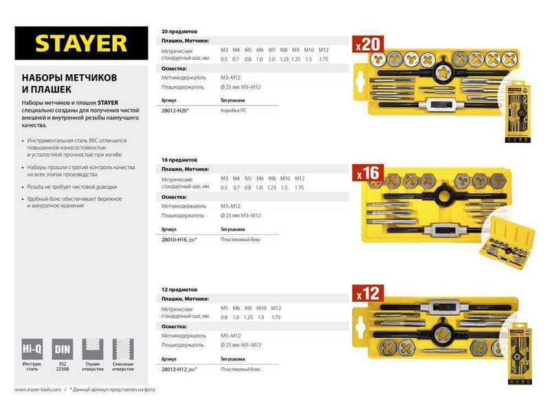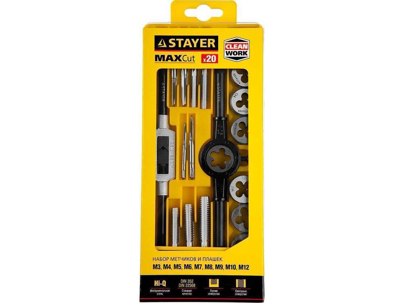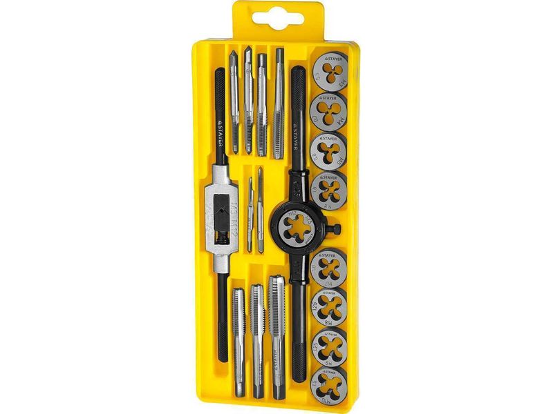 Набор метчиков и плашек STAYER отлично подходит для получения качественной и чистой внешней и внутренней резьбы Преимущества