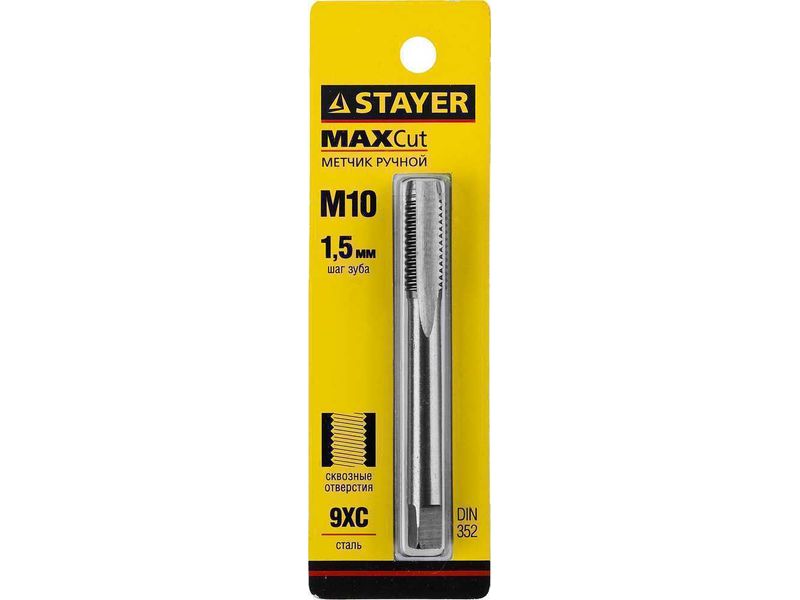 Метчик STAYER MASTER одинарный, для сквозных отверстий, сталь 9ХС, М10х1,5