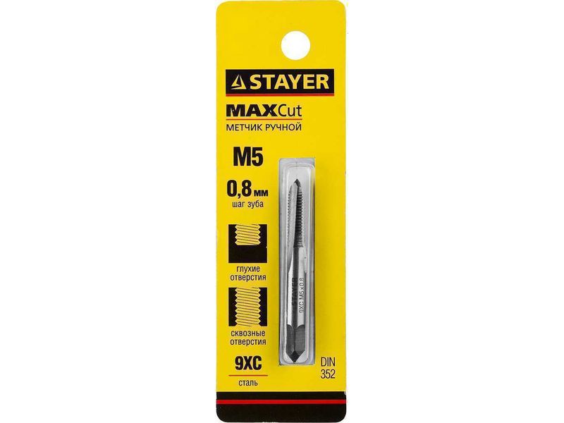 Купить Метчик STAYER MASTER одинарный, для сквозных и глухих отверстий, сталь 9ХС, М5х0,8