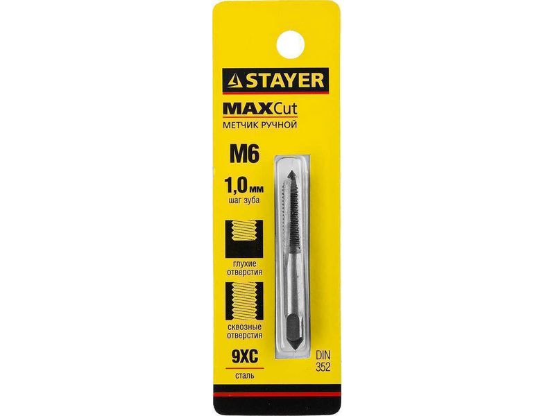 Купить Метчик STAYER MASTER одинарный, для сквозных и глухих отверстий, сталь 9ХС, М6х1,0