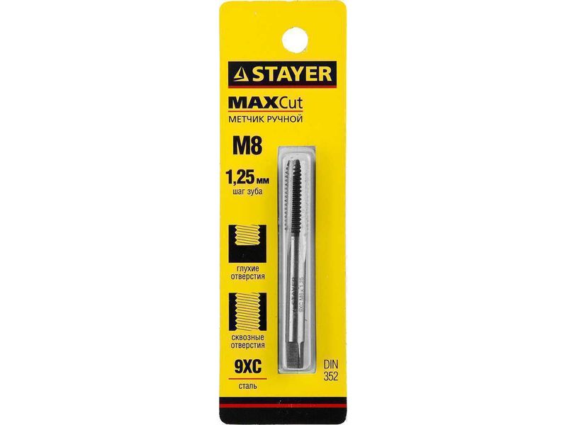 Купить Метчик STAYER MASTER одинарный, для сквозных и глухих отверстий, сталь 9ХС, М8х1,25