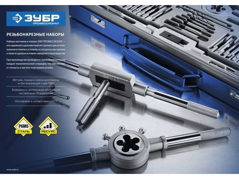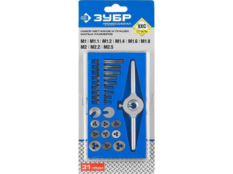 Купить Набор метчиков и плашек ЗУБР ПРОФЕССИОНАЛ малых размеров: плашки 9шт, метчики 18шт, держатель 1шт, вкладыши 3 шт, 31 предмет