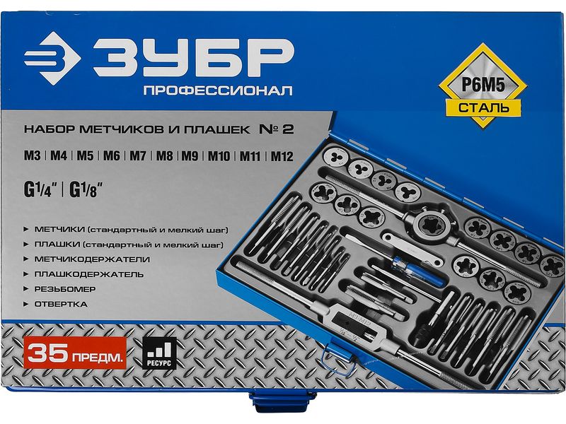 Набор метчиков и плашек ЗУБР ПРОФЕССИОНАЛ , сталь Р6М5, 35 предметов