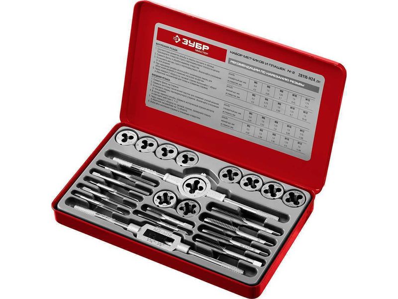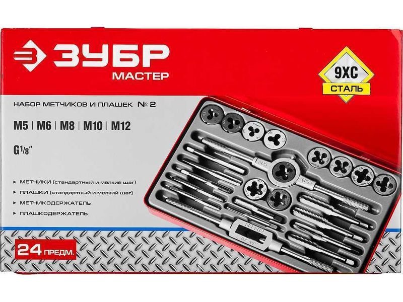 Набор метчиков и плашек ЗУБР МАСТЕР, сталь 9ХС, 24 предмета