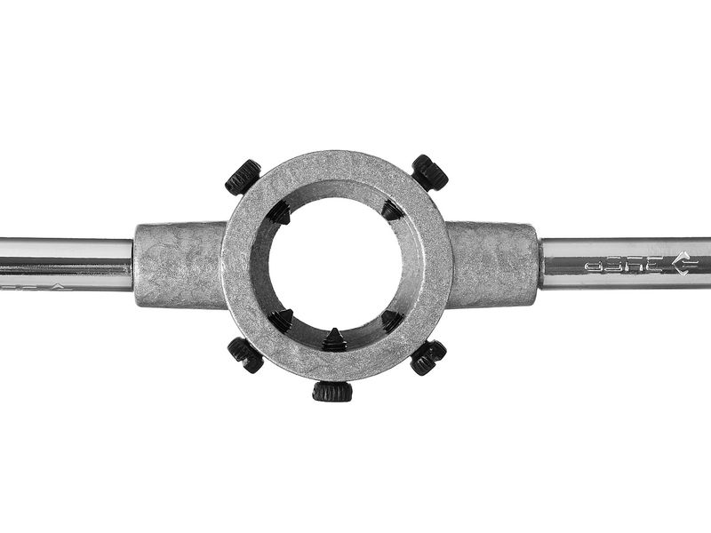 Плашкодержатель оснащен стопорными винтами для фиксации плашки