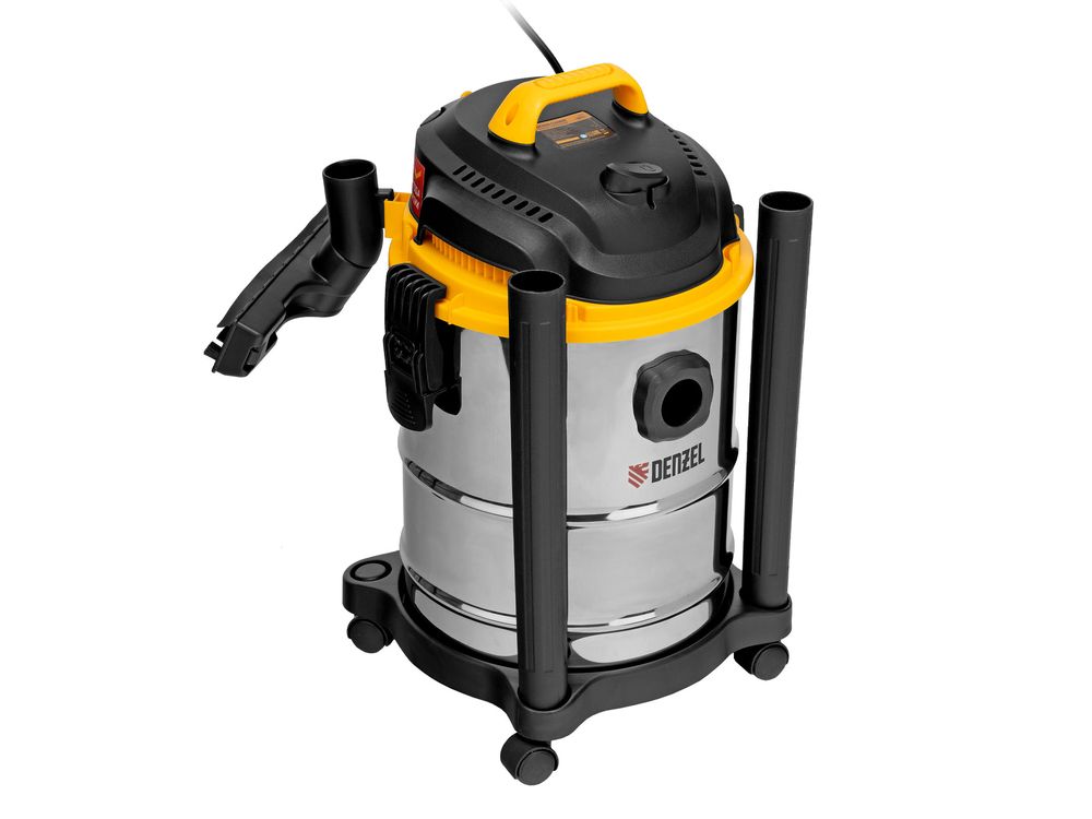 Пылесос строительный Denzel SVC15 28201 мощностью 1200 Вт, с баком объемом 15 л и шлангом длиной 2 м, предназначен для уборки бетонной, кирпичной пыли, опилок, стружки, также предусмотрена функция сбора воды. Пылесос используется во время проведения строительных и ремонтных работ, будет полезен для поддержания чистоты в мастерской, гараже, производственном помещении.