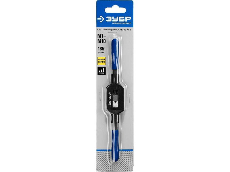 Метчикодержатель ЗУБР ПРОФЕССИОНАЛ №1, с регулируемыми вкладышами, сталь 45, для метчиков - M3-M10, общая длина - 185 мм