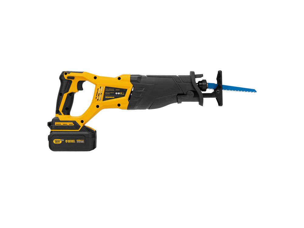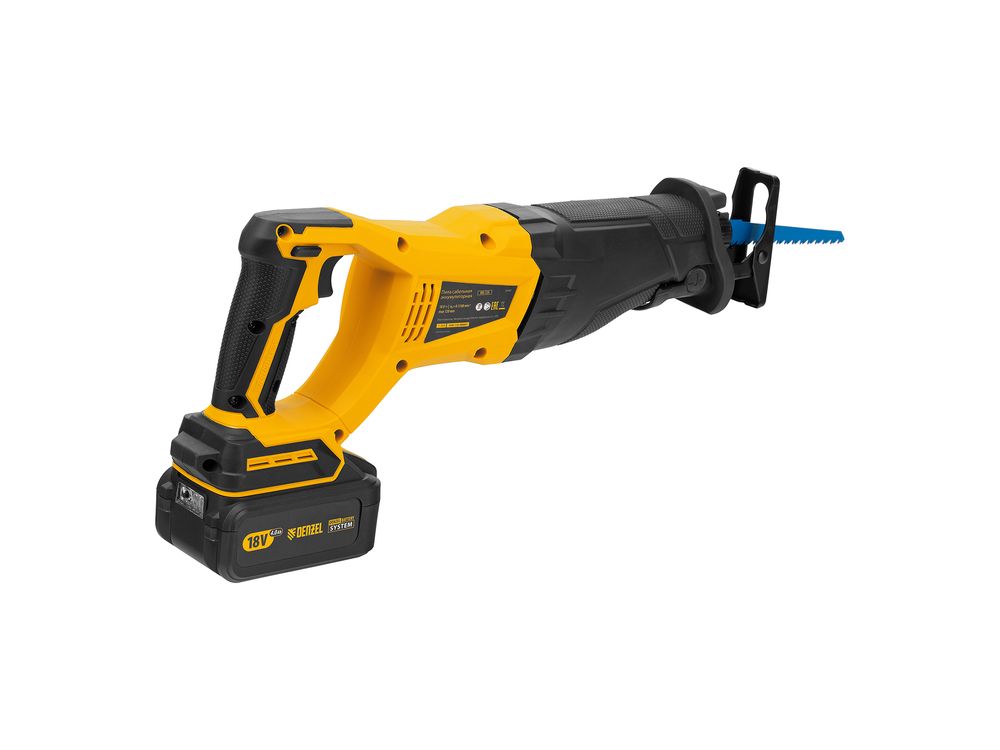 Сабельная аккумуляторная пила Denzel BRC-120 28460 с бесщеточным двигателем работает от аккумулятора Li-Ion с рабочим напряжением 18 В. Предназначена для распила фанеры, досок, ДСП, ДВП, пластика, а также для обрезки веток. Максимальная глубина пропила в древесине составляет 120 мм, в стали — 10 мм. Оснастка совершает до 3100 ходов в минуту, что обеспечивает эффективную работу.,Универсальный аккумулятор емкостью 4 А/ч, с интеллектуальной системой распознавания нагрузки, рассчитан на длительный срок службы. Он совместим со всеми инструментами единой платформы Denzel battery system 18V серии IB.