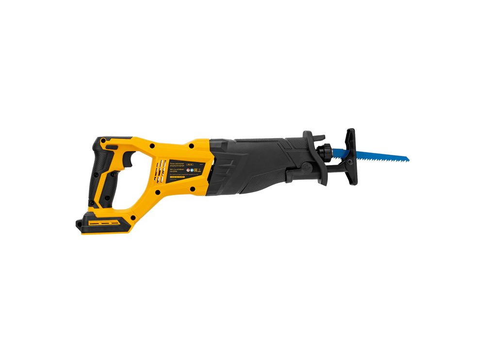Сабельная аккумуляторная пила Denzel BRC-120-0 28461 с бесщеточным двигателем работает от аккумулятора Li-Ion с рабочим напряжением 18 В. Предназначена для распила фанеры, досок, ДСП, ДВП, пластика, а также для обрезки веток. Максимальная глубина пропила в древесине составляет 120 мм, в стали — 10 мм. Оснастка совершает до 3100 ходов в минуту, что обеспечивает эффективную работу. ,Пила поставляется без аккумулятора и зарядного устройства, к ней подходит универсальный аккумулятор емкостью 4 А/ч, совместимый с любым инструментом единой платформы Denzel battery system 18V серии IB.