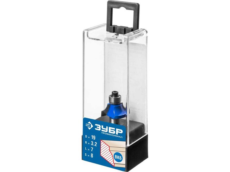 Фреза кромочная калевочная №1, D- 19мм, рабочая длина-7мм, радиус-3,2мм, хв.-8мм, d-9,5 мм, ЗУБР Профессионал-1852