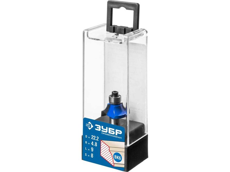 Фреза кромочная калевочная №1, D- 22,2мм, рабочая длина-9мм, радиус-4,8мм, хв.-8мм, d-9,5 мм, ЗУБР Профессионал