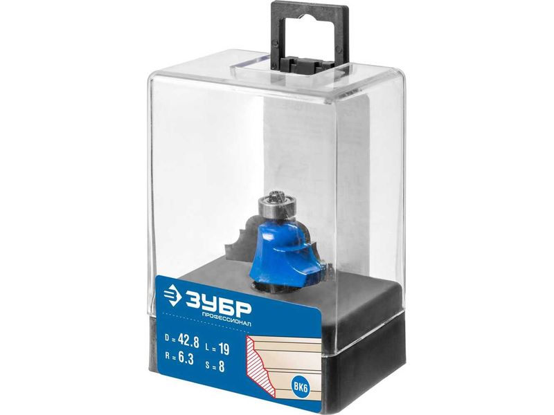 Купить Фреза кромочная калевочная №4, D- 42,8мм, рабочая длина-19мм, радиус-6,3мм, хв.-8мм, d-12,7мм, ЗУБР Профессионал