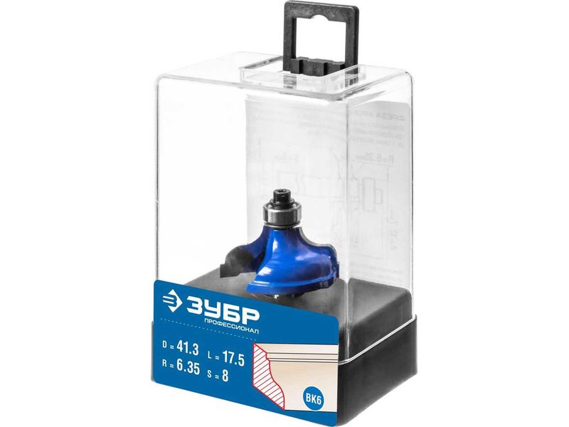 Купить Фреза кромочная калевочная №5, D- 41,3мм, рабочая длина-17,5мм, радиус-6,35мм, хв.-8мм, d-12,7мм, ЗУБР Профессионал