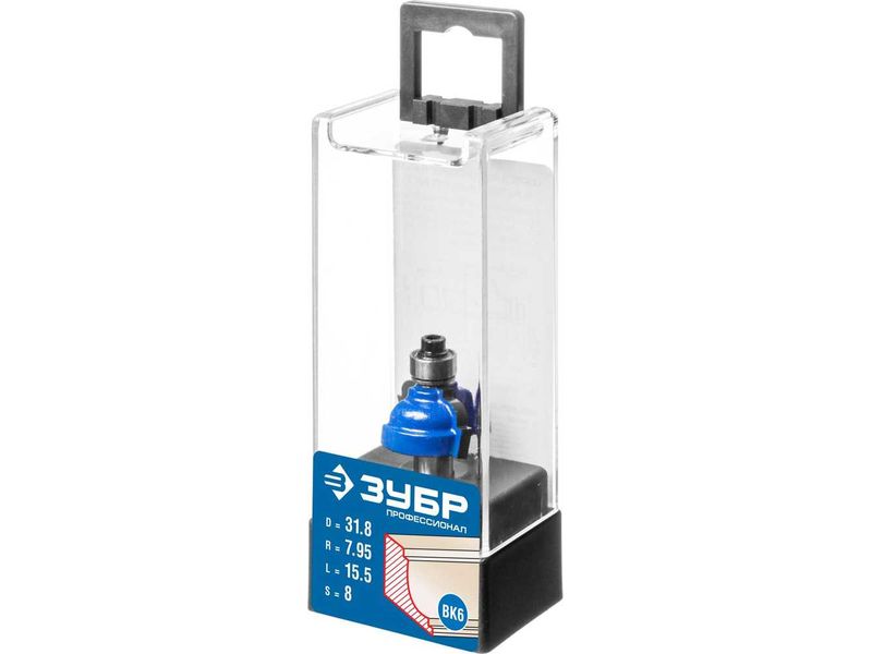 Фреза кромочная калевочная №7, D- 31,8мм, рабочая длина-15,5мм, радиус-7,95мм, хв.-8мм, d-9,5мм, ЗУБР Профессионал