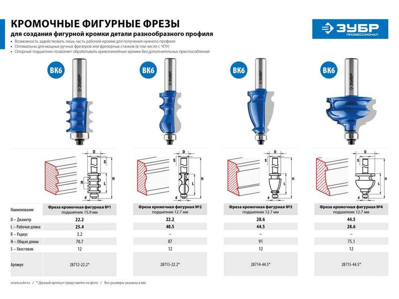 Фреза отлично подходит для изготовления фигурных кромок и торцев деталей при обработке различных видов древесины.