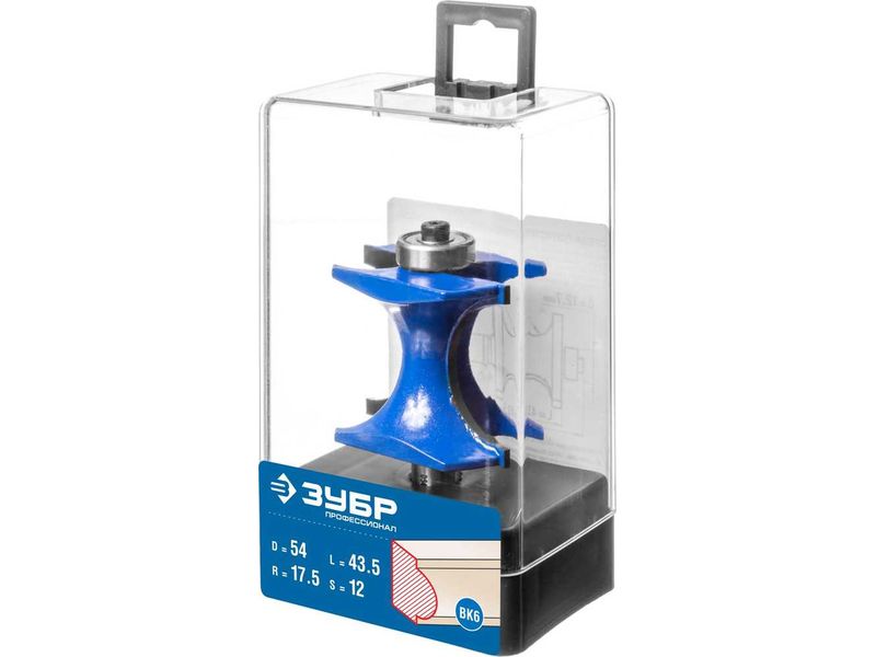 Фреза полустержневая с подшипником, D- 54мм, рабочая длина-43,5мм, радиус-17,5мм, хв.-12мм, d-12,7мм, ЗУБР Профессионал |