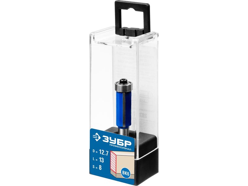 Фреза кромочная с нижним подшипником, D- 12,7мм, рабочая длина-13мм, хв.-8мм, d-12,7мм, ЗУБР Профессионал-1852