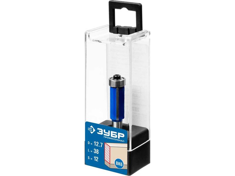 Фреза кромочная с нижним подшипником, D- 12,7мм, рабочая длина-38мм, хв.-12мм, d-12,7мм, ЗУБР Профессионал |