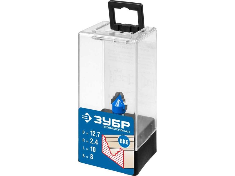 Фреза пазовая фасонная №6, D- 12,7мм, рабочая длина-10мм, радиус-2,4мм, хв.-8 мм, ЗУБР Профессионал-1852