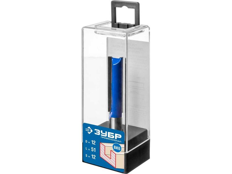 Фреза пазовая прямая, удлиненная, D- 12мм, рабочая длина-51мм, хв.-12 мм, ЗУБР Профессионал-1852