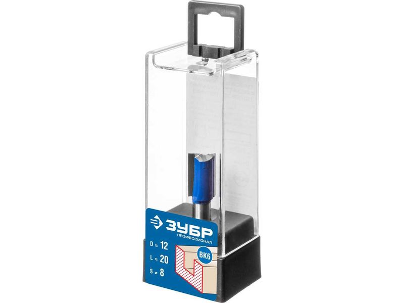 Фреза пазовая прямая с нижними подрезателями, D- 12мм, рабочая длина-20мм, хв.-8 мм, ЗУБР Профессионал-1852