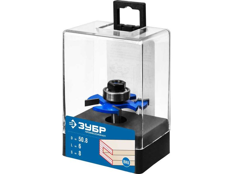Фреза горизонтально-пазовая, D- 50,8мм, высота-6мм, хв.-8мм, d-22мм, ЗУБР Профессионал-1852