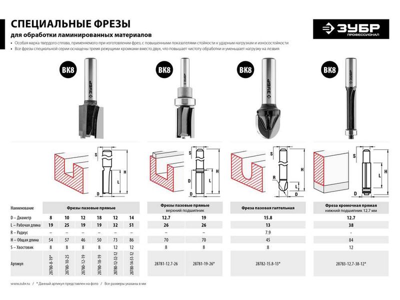 ИспользованиеИспользуется на фрезерных станках и ручных фрезерах при обработке мебели, столярных изделий, предметов интерьера, а также реставрационных работах и внутренней отделке. Характреристики