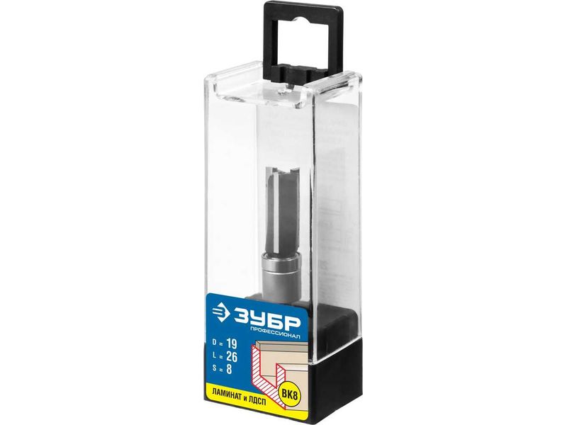 Фреза пазовая прямая с верхним подшипником, D-19 мм, рабочая длина-26 мм, хв.-8 мм, d-19 мм, ЗУБР Профессионал |