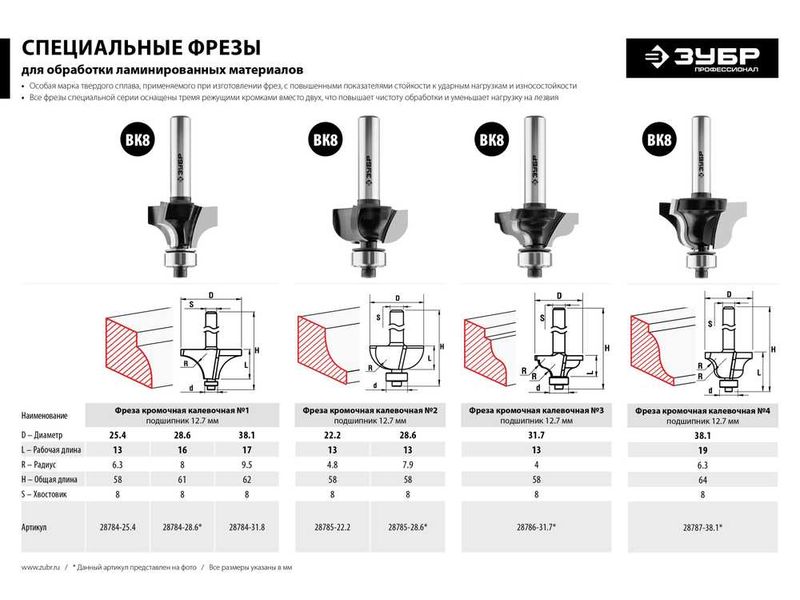 ИспользованиеИспользуется на фрезерных станках и ручных фрезерах при обработке мебели, столярных изделий, предметов интерьера, а также реставрационных работах Характреристики
