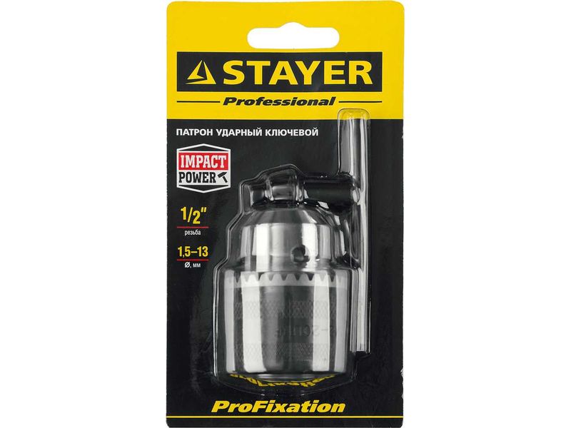 Патрон ударный STAYER PROFESSIONAL ключевой для дрели, 13 мм, с ключом в комплекте, посадочная резьба 1/2 , Д 1,5-13мм-34