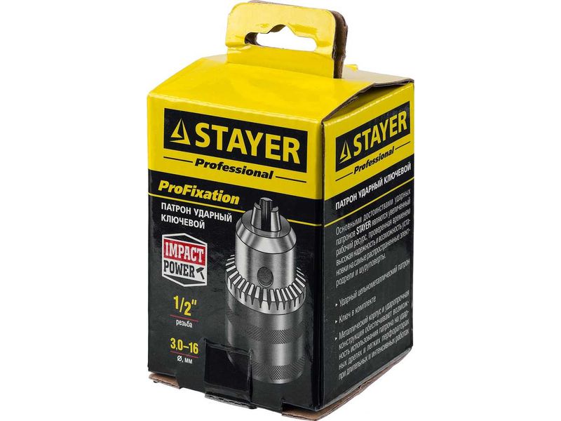 Купить Патрон ударный STAYER PROFESSIONAL ключевой для дрели, 16 мм, с ключом в комплекте, посадочная резьба 1/2 , Д 3,0-16мм
