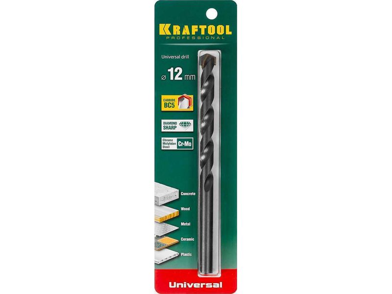 KRAFTOOL UNIVERSAL 12 х 160 мм сверло универсальное по металлу, бетону, кирпичу, керамике PROFESSIONAL