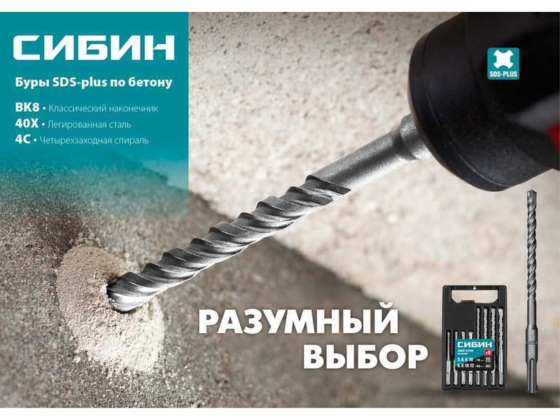 Буры СИБИН по бетону это надежный и проверенный инструмент в быту и строительстве, рассчитанный на использование на средних и тяжелых перфораторах ударного действия с зажимом SDS-plus.