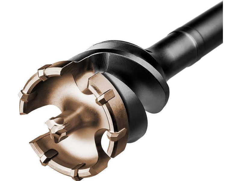 Для ударного сверления глубоких отверстий большого диаметра в бетоне, кирпиче, камне. Используется с тяжелыми перфораторами SDS-max (> 20 Дж).