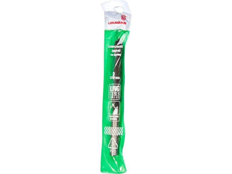 Спиральное сверло по дереву URAGAN предназначено для сверления глухих и сквозных отверстий в древесине, фанере, ДСП, клееных щитах и пластмассе