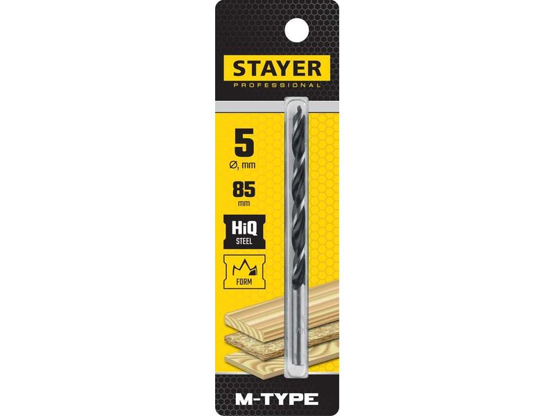 Сверло спиральное по дереву "M-type", М-образная заточка, сталь HCS, STAYER Professional 2942-085-05, d-5мм