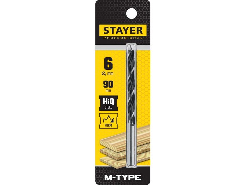 Сверло спиральное по дереву "M-type", М-образная заточка, сталь HCS, STAYER Professional 2942-090-06, d-6мм
