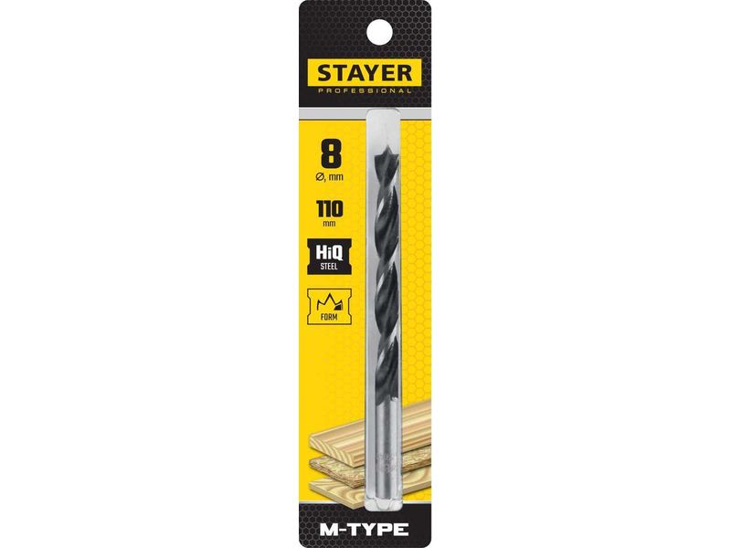STAYER "M-type" 8,0x110/80мм, сверло спиральное по дереву, М-образная заточка