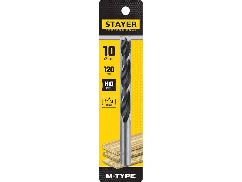 STAYER "M-type" 10,0x120/75мм, сверло спиральное по дереву, М-образная заточка