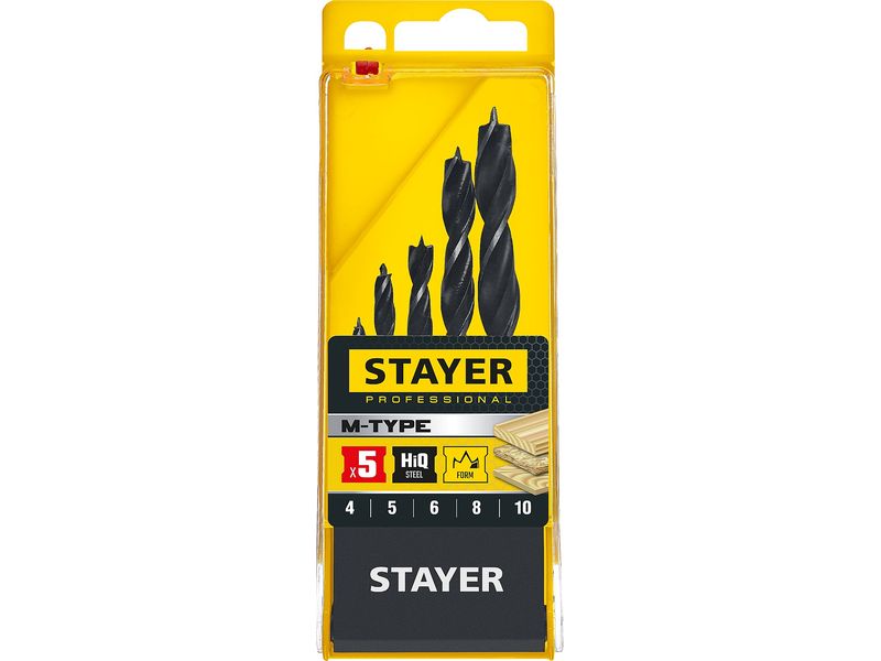 Набор сверл спиральных по дереву "M-type", 5шт(d-4-10мм), М-образная заточка, сталь HCS, STAYER Professional 2942-H5