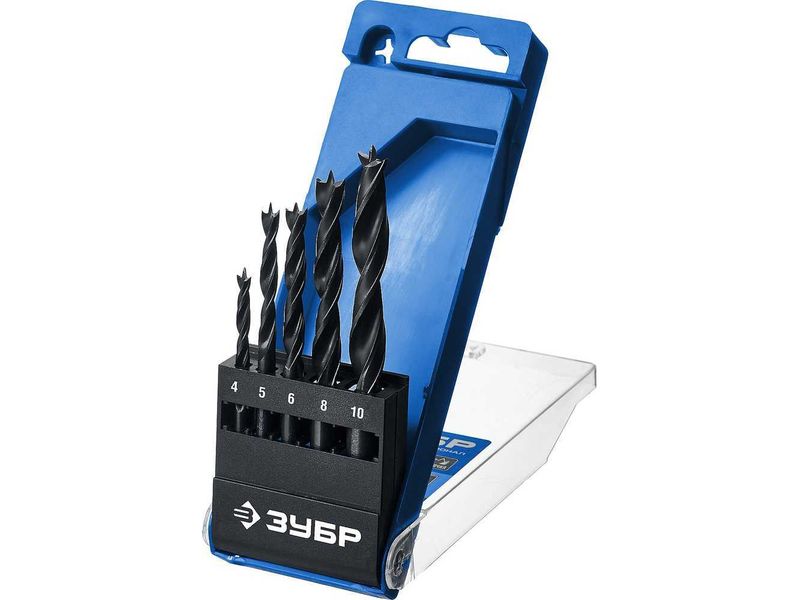 Купить Набор сверл спиральных по дереву, 5шт(d-4-10мм), М-образная заточка, сталь 65Г, ЗУБР Профессионал 29421-H5