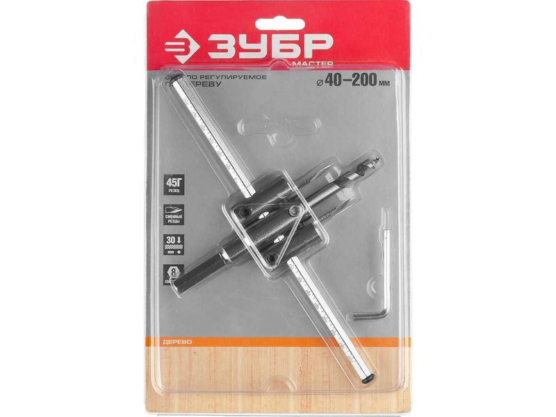 Купить Сверло ЗУБР "МАСТЕР" регулируемое по дереву, двухрезцовое "Балеринка", d 40-200мм, 1-30мм, в блистере